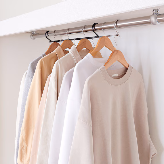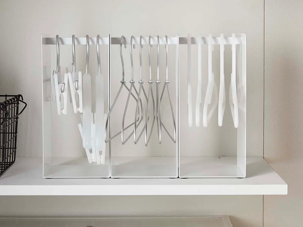 ポールに引っ掛けて、衣類を段違いに収納することで省スペース化を叶えます。45~70cmに幅が伸縮するため、収納スペースに合わせて柔軟に設置可能。低価格で収納量を増やせるコスパの高いアイテムです。