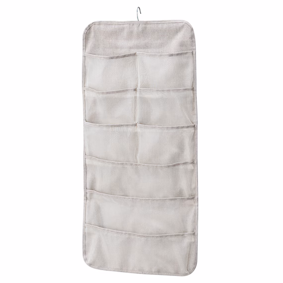 両面にある30のポケットに下着や靴下など、細かいものを入れられる収納グッズ。クローゼットのポールに吊るすだけで、デッドスペースを有効活用できます。メッシュなので、外から柄や色の確認が可能です。