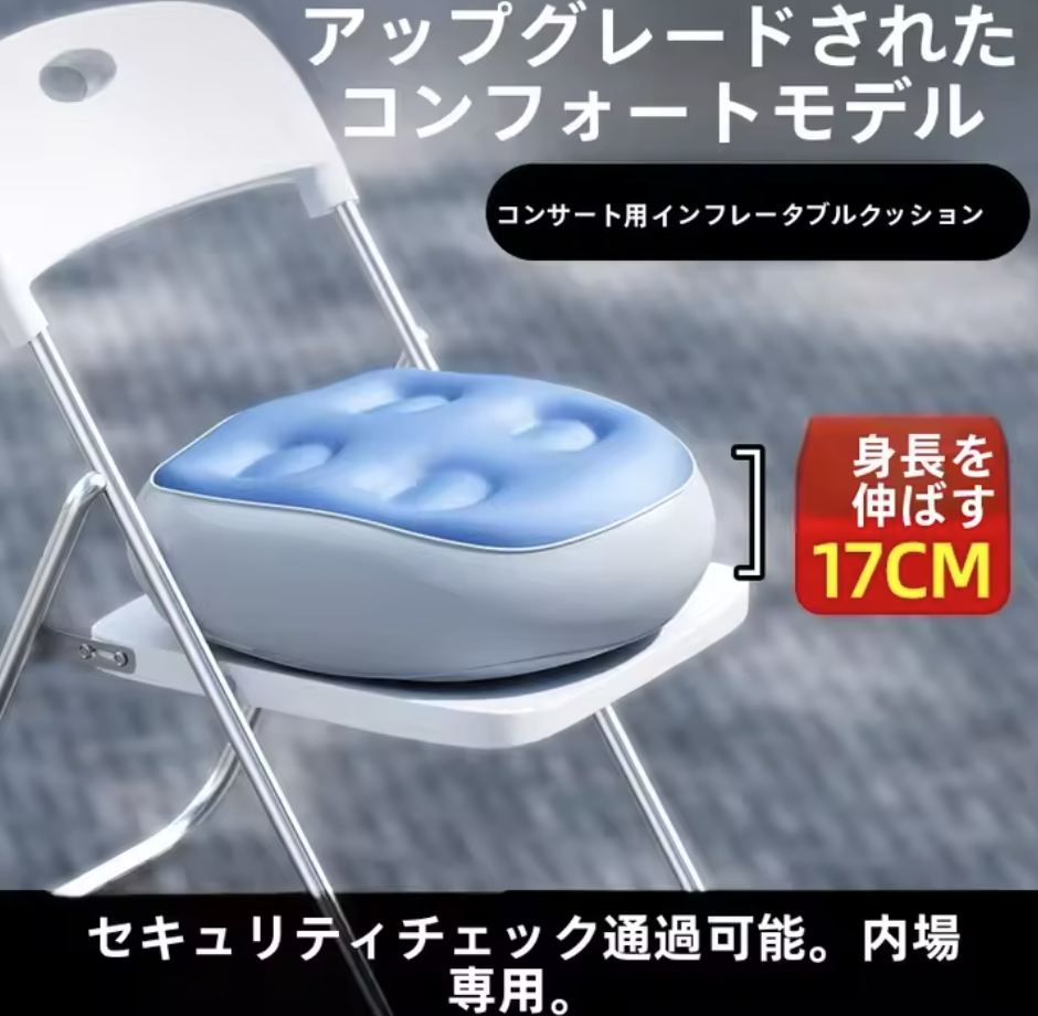 コンパクトに折りたためてバッグに入れやすい携帯用エアクッション。大人用座席しかないイベントでも、子どももステージが見やすくなります。軽量なので荷物が増えがちな子連れ外出にも◎。